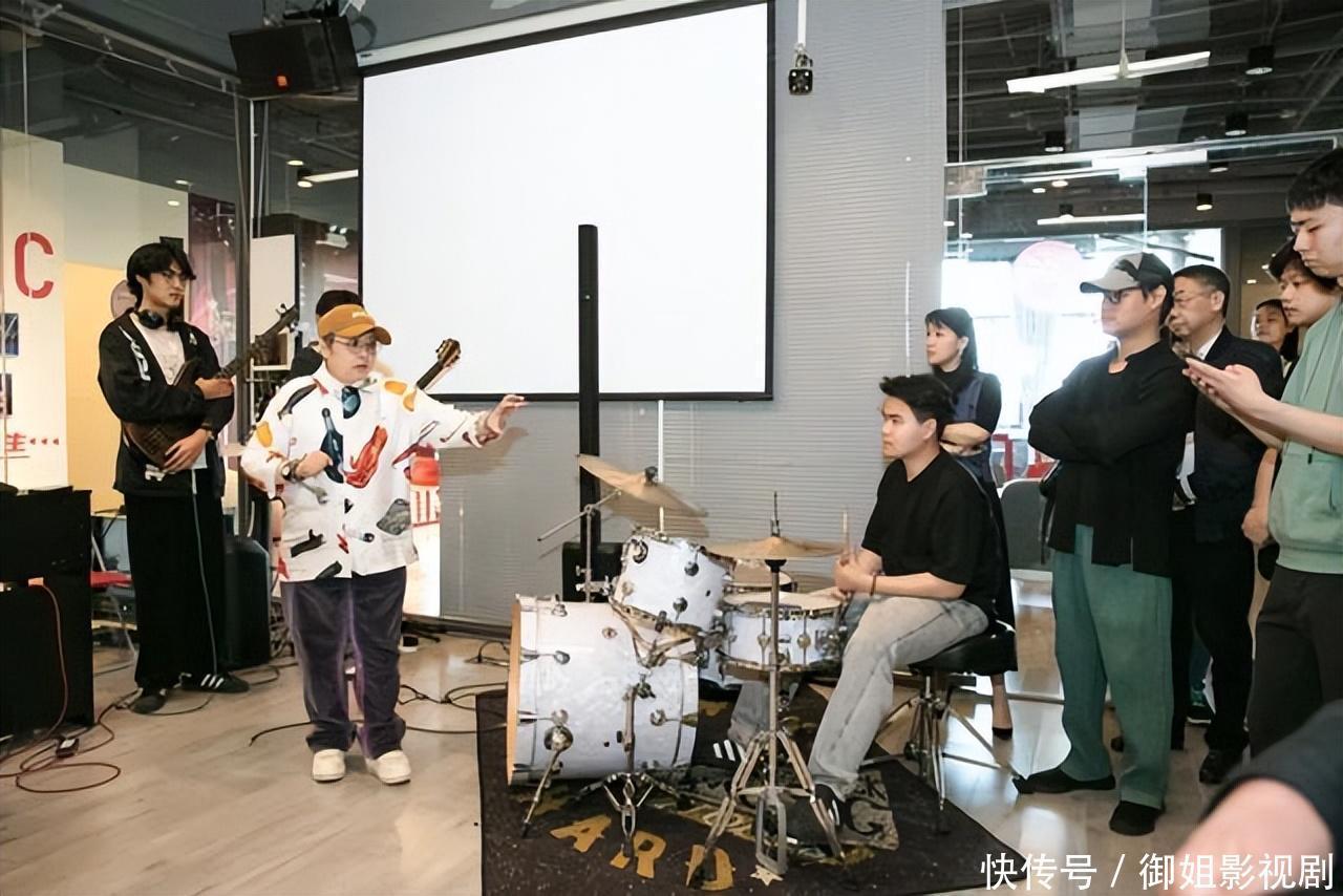 5月8日,在多功能教室,韩红不雅看学院学生乐队爵士乐合奏,并切身携带同学们现场演奏的细节与妙技。