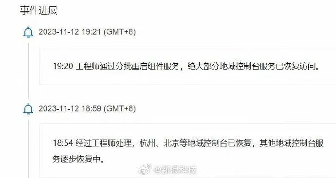 第一财经了解到,在一个阿里云客户办事相沿相干的钉钉官方群内,相干处理员发布公告称,2023年11月12日17:44起,阿里云居品收尾台侦查及API调用出现使用相当,阿里云工程师正在首要介入排查。
